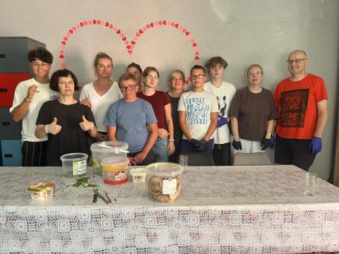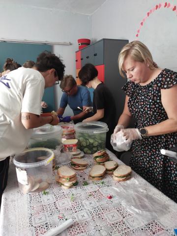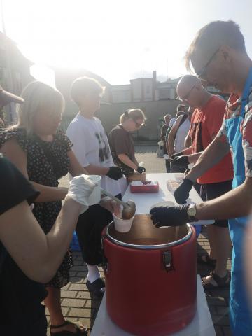 Wbrew „czarnemu scenariuszowi” wolontariuszy było tylu, że i z bardziej wymagającą zupą dalibyśmy radę. Andrzej i Kasia przynieśli upieczone przez siebie ciasta więc każda osoba, która do nas przyszła w sobotę dostała kawałek pysznego, domowego ciasta do kawy lub herbaty. Na koniec częstowaliśmy jeszcze domowym zimnym kompotem z porzeczek i wiśni. Był to taki letni akcent, który wzbudził wiele zachwytu i próśb, żeby na każde spotkanie takie pyszności przywozić.