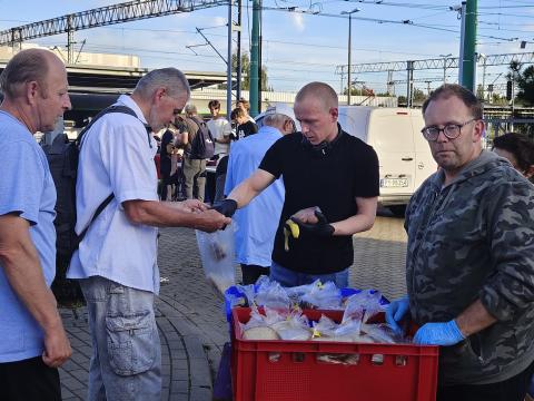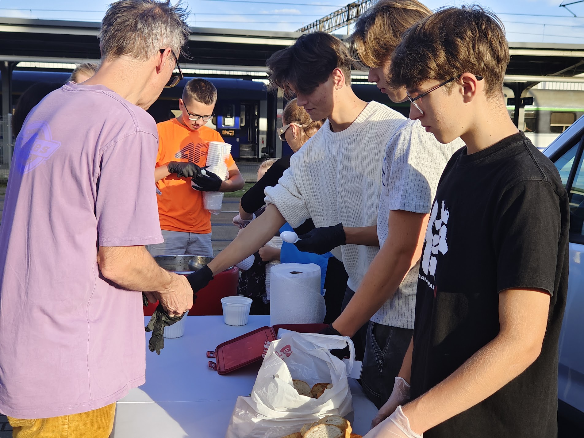 Kolejna sobota już tak blisko, a my jeszcze nie zdążyliśmy w ferworze przeróżnych aktywności opowiedzieć Wam o tym co się wydarzyło w ostatnią. Z ogromną wdzięcznością myślimy o tym, że wolontariusze z GS1 Polska po raz kolejny zechcieli z nami ugotować zupę, przygotować kanapki, kawę i herbatę oraz porcje ciasta dla osób, które czekały na nas na PST Dworzec Zachodni i były w potrzebie żywnościowej. Oprócz pracy ich rąk otrzymaliśmy również wsparcie finansowe, które przeznaczyliśmy na zakup potrzebnych produktów, aby zupa była pożywna, a kanapki pełne witamin. Dzięki temu mogliśmy też kupić dwa kartony bananów, które wydawaliśmy wraz z brzoskwiniami od Ani.