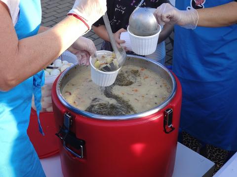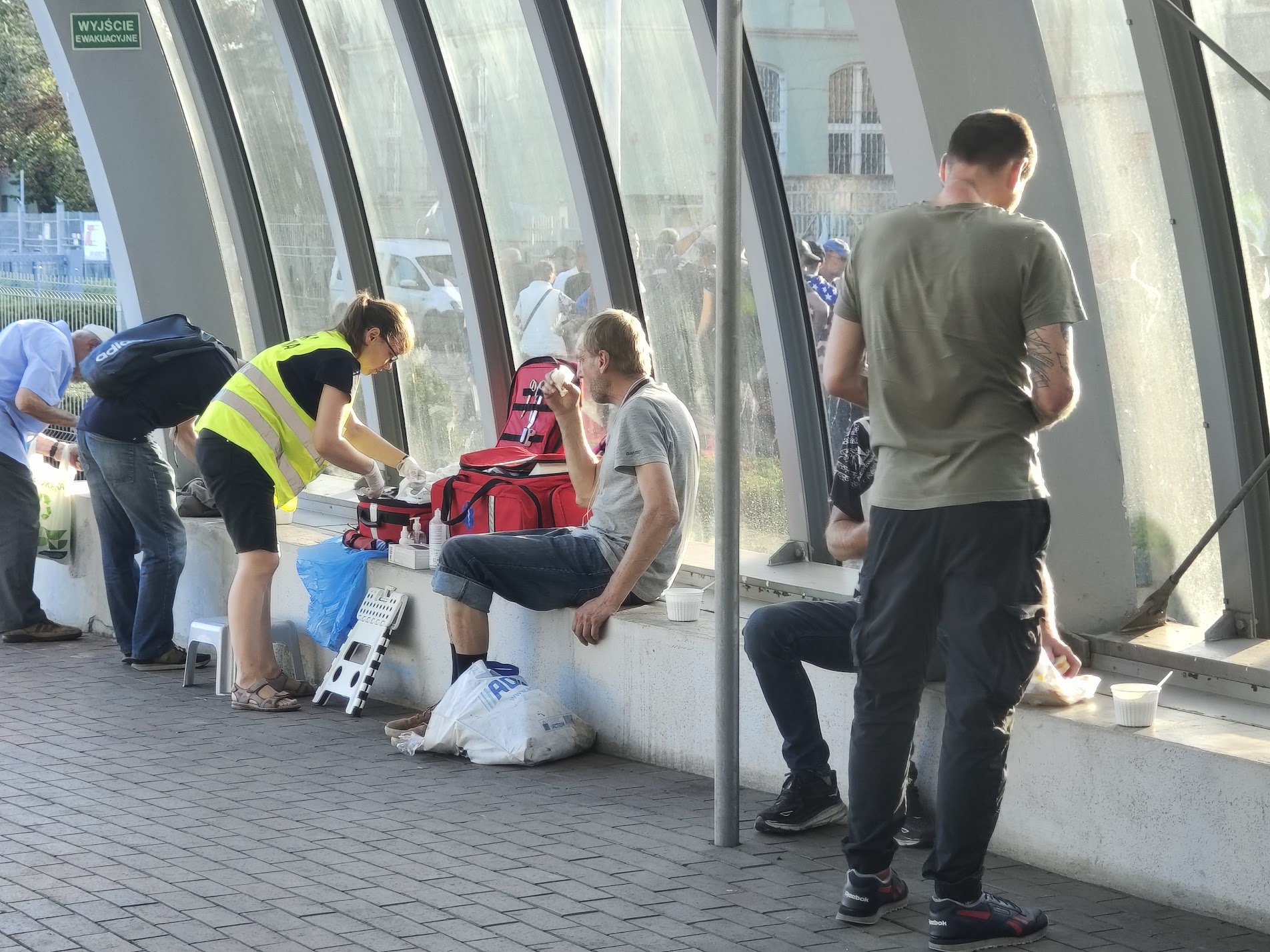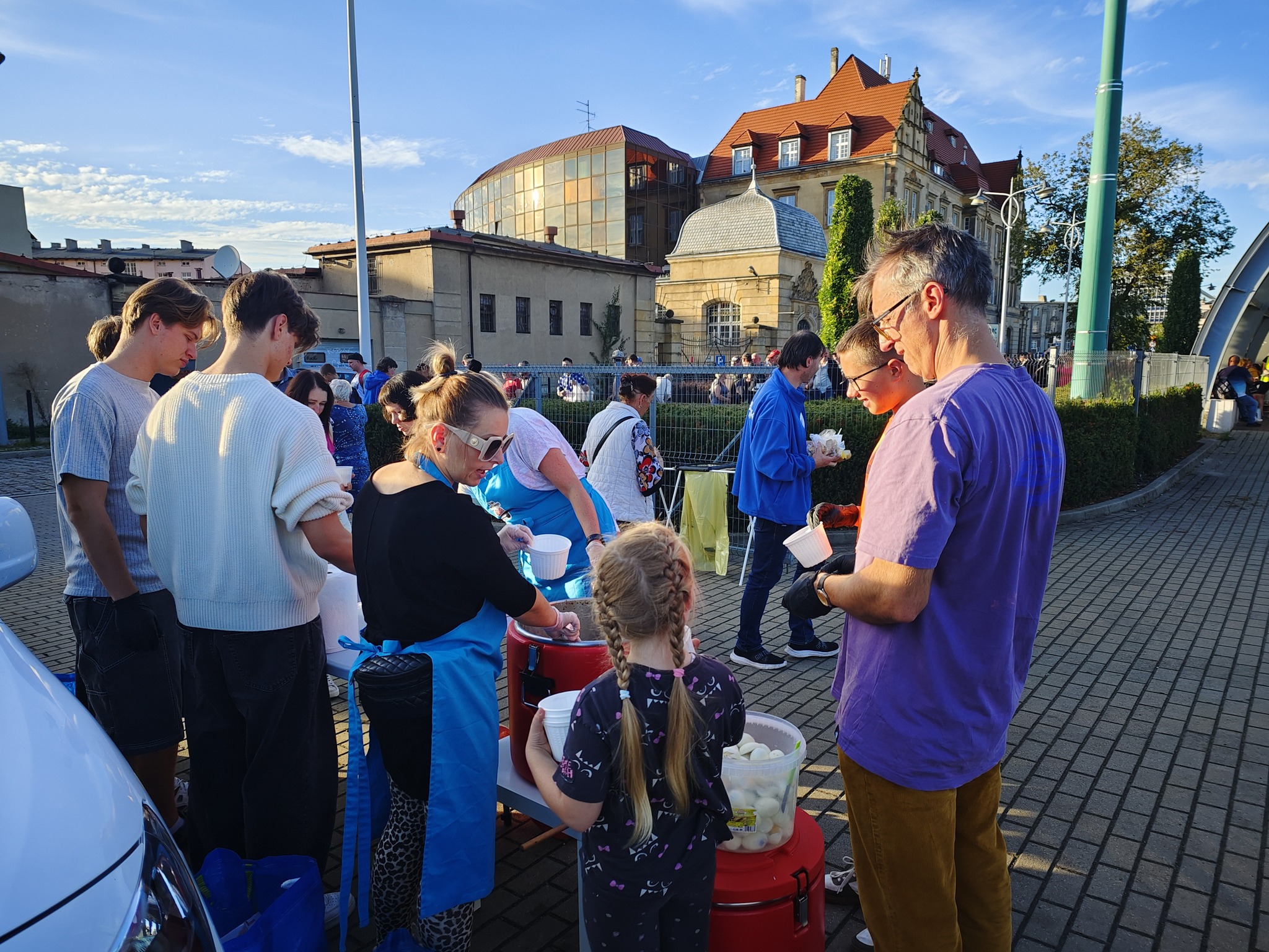 Podczas wydawania posiłku była także opieka medyczna, zapisy na potrzebne rzeczy, a w tłumie osoby młode i nowe zapraszała do rozmowy nasza socjalna Agnieszka.