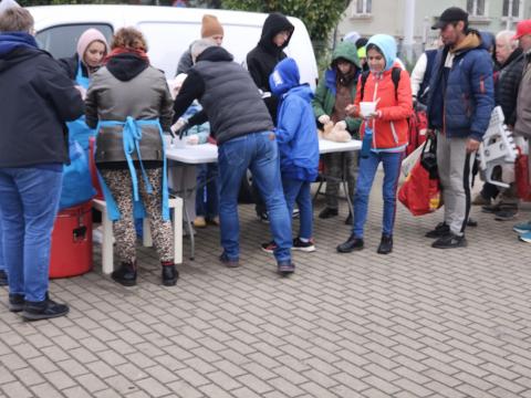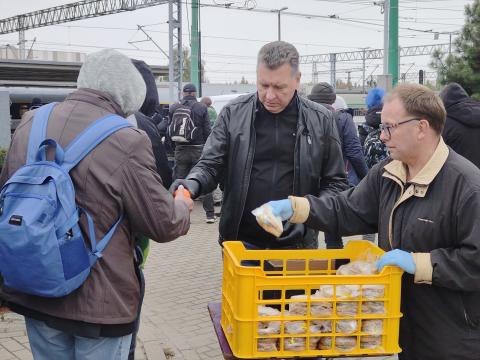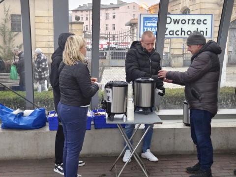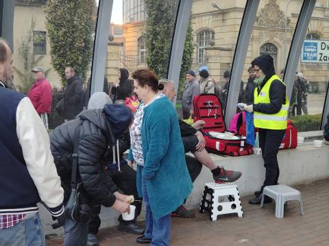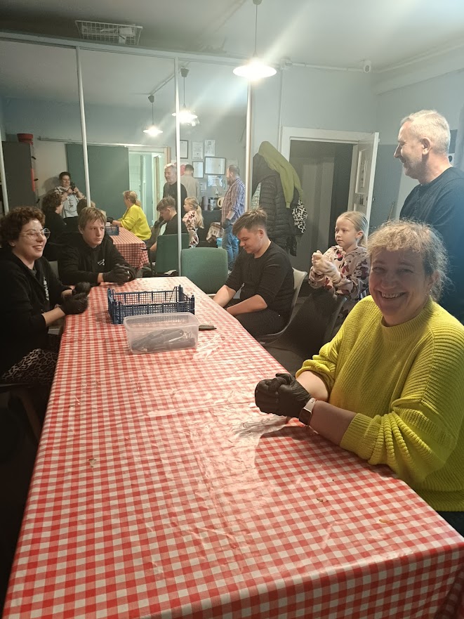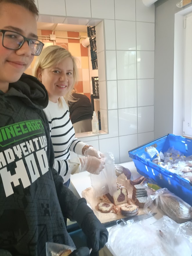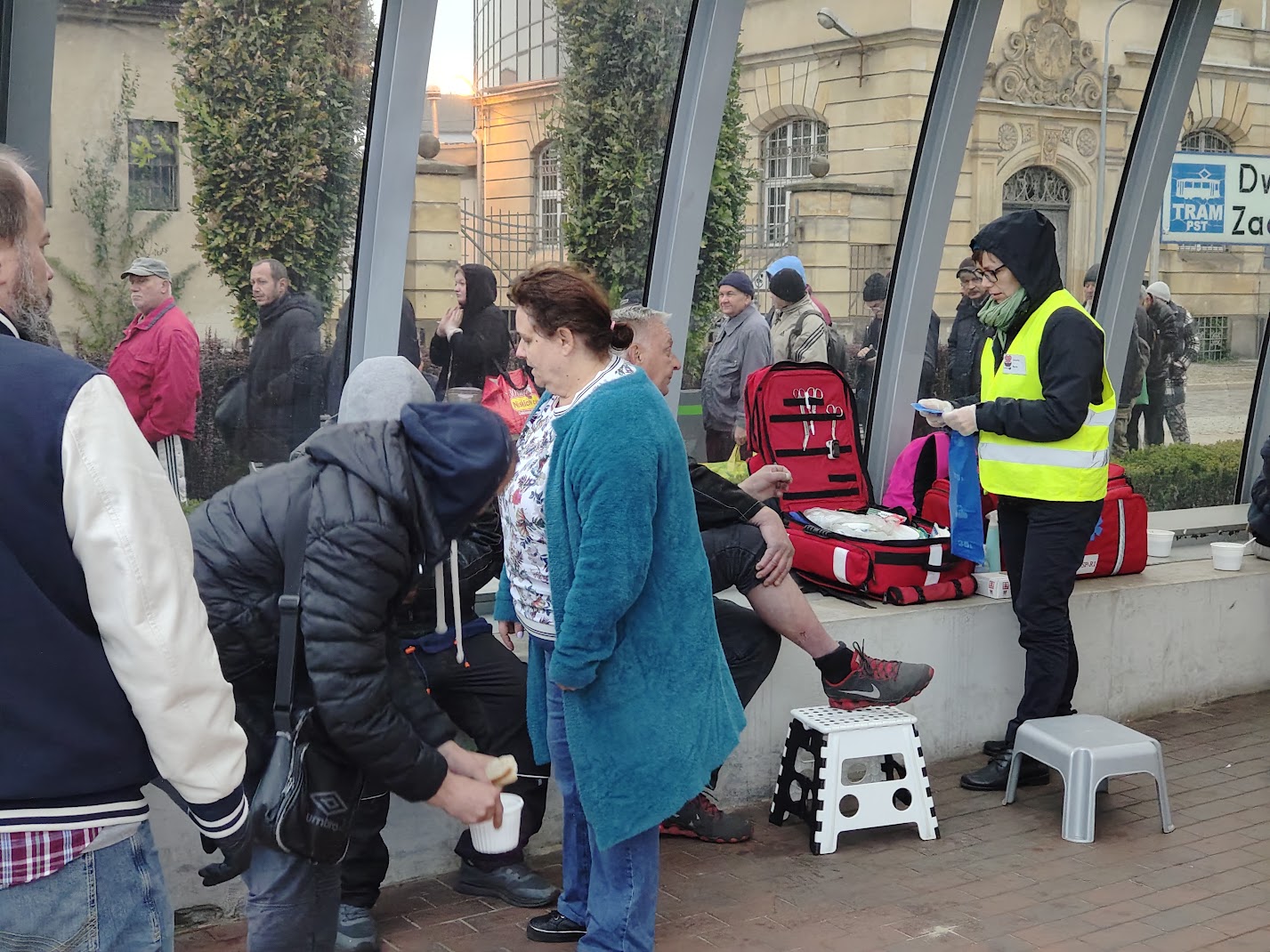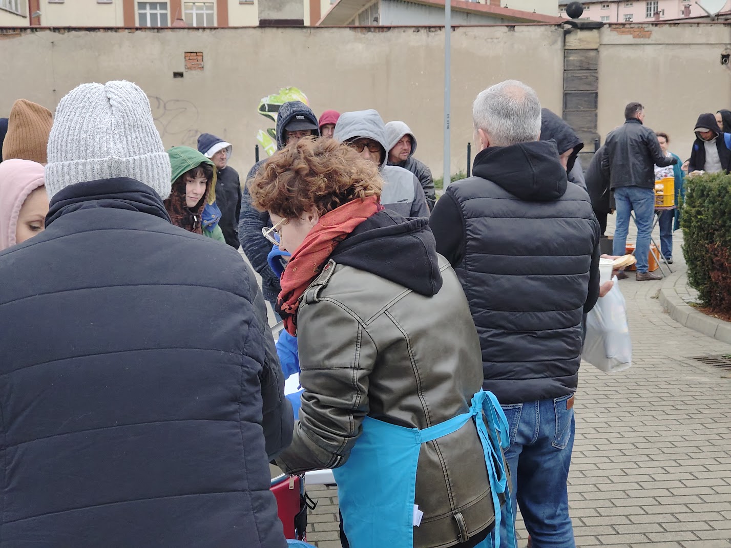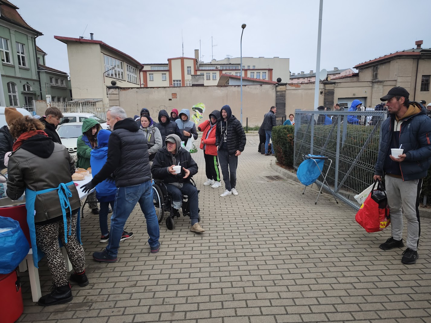 Przygotowaliśmy też 180 kanapek, 36 litrów gorącej kawy i herbaty. Były też porcje ciasta od pięknych ludzi z miasta, mandarynki. Nawet w tym dniu pogoda nam sprzyjała, bo podczas wydawania posiłku było okienko pogodowe. Deszcz zaczął ponownie padać już pod koniec naszego spotkania.