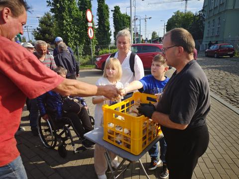 Elegancki, elokwentny, starszy człowiek, który musi stanąć w kolejce, aby zjeść posiłek, który przywozimy, bo nie wystarcza mu pieniędzy na to, aby samodzielnie zaspokoić swoje potrzeby. W naszej kolejce z całą pewnością takich osób jest znacznie więcej. Większość w pośpiechu zjada posiłek i nie nawiązuje relacji.