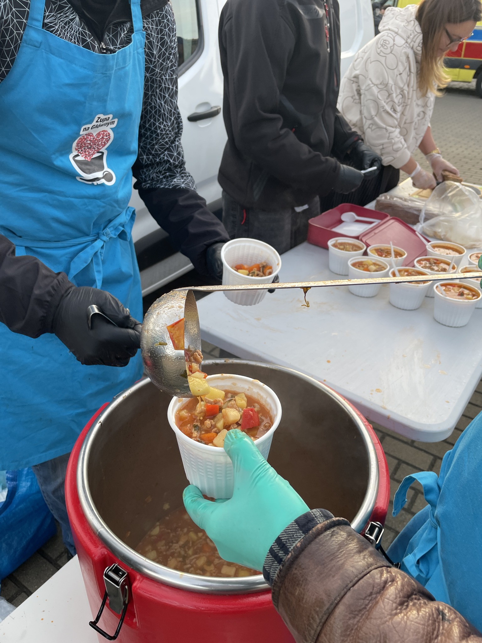 W sobotę po raz 418. znowu spotkaliśmy się przy wielkim garze zupy. Na kuchni pachniało czosnkiem i papryką, a w sercach mieszała się radość z powodu ciężaru świadomości, że Ci dla których gotujemy mają niewiele powodów do uśmiechu. Rozlaliśmy 100 litrów gulaszowej – gorącej, gęstej, takiej, co rozgrzewa nie tylko żołądek. Ale ważniejsze od gulaszowej były rozmowy. O zbliżającym się chłodzie, o tym, że ktoś właśnie znalazł nocleg, o tym, że czasem najtrudniejsze jest po prostu wstać rano.