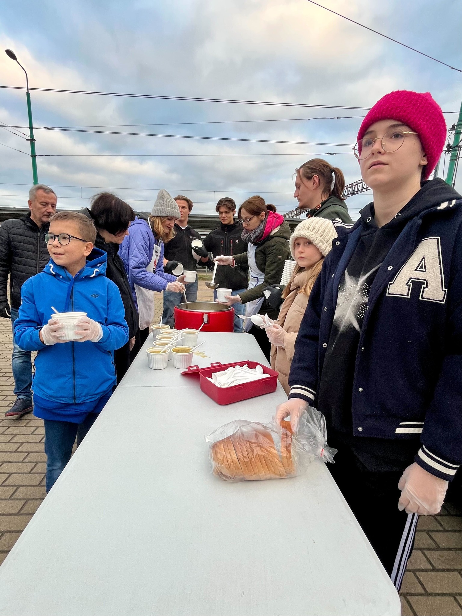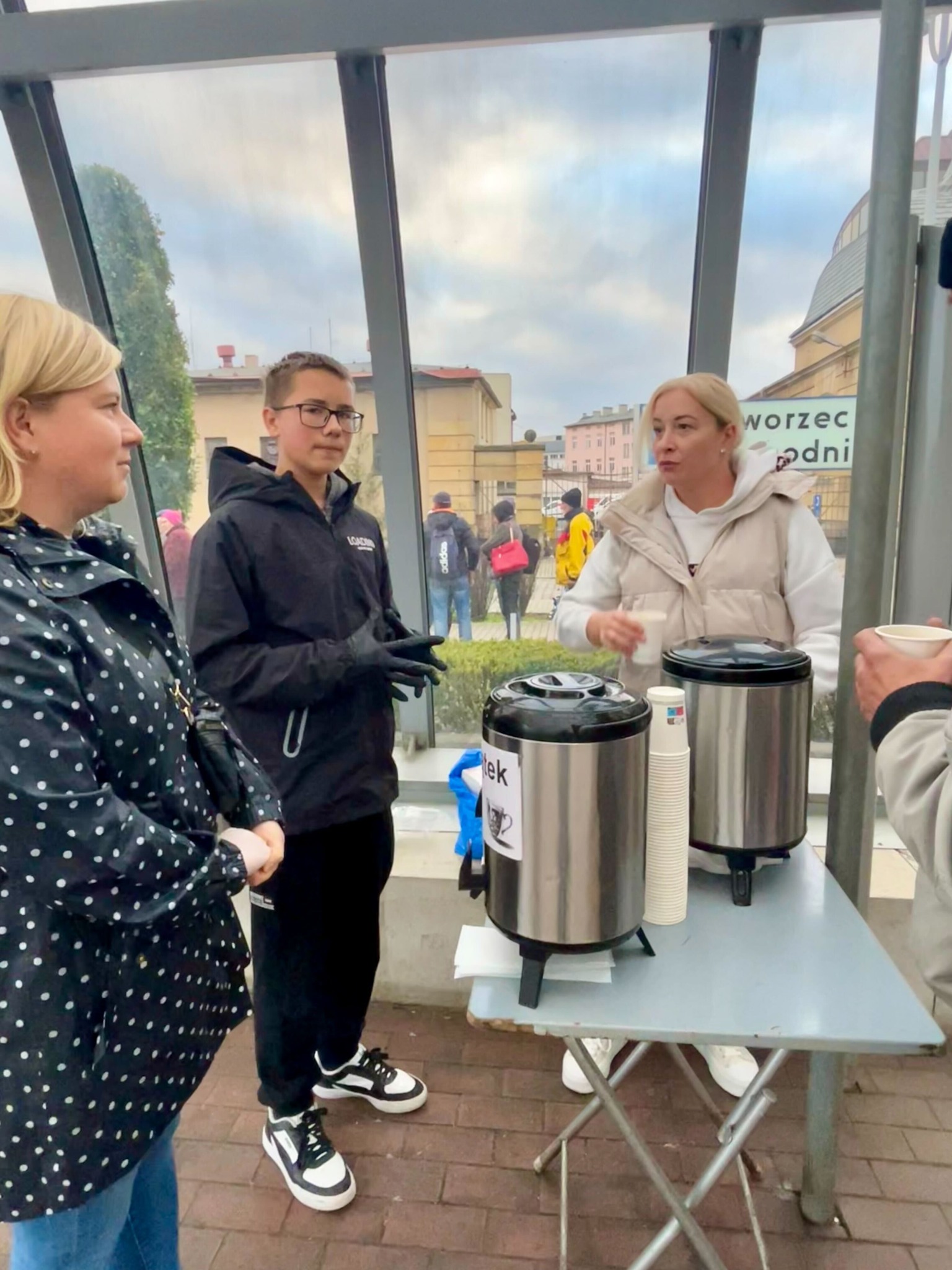 W bagażniku wieźliśmy: 100 litrów gęstej zupy, 180 kanapek, 150 kawałków ciasta, 20 litrów kawy i herbaty. Wszystko rozeszło się w 20 minut. Zaczęło mżyć, zrobiło się chłodno. Przy naszej lekarce, Marcie, ustawiła się długa kolejka potrzebujących. Widzieliśmy, jak nasi Zupowi Goście pakowali kanapki na drogę, przelewali herbatę do termosów, owijali torby i wózki folią. Ruszali w stronę miejsc, które tej nocy będą ich schronieniem. Niestety często dalekich od bezpiecznych i ciepłych. Coraz więcej osób pyta o miejsca w schroniskach. W ich głosach słychać obawę przed nadchodzącymi miesiącami i smutek.