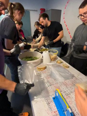 420. Zupa. Ależ się działo! Wielu wspaniałych wolontariuszy, rąk gotowych do pracy i osób, które przyszły do nas z ciastem. Domofon dzwoniący niemal bez przerwy. Ostatnio apelowaliśmy o zbiórkę rzeczy i odpowiedzieliście całym sercem. Dostaliśmy buty, ciepłą odzież, śpiwory. Bardzo Wam dziękujemy. Tego dnia byli z nami wolontariusze z Franklin Templeton i także dzięki wsparciu finansowemu z ich strony mieliśmy na produkty, które były nam potrzebne do przygotowania posiłku.