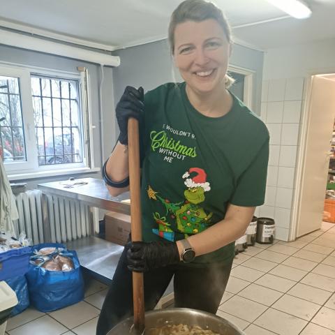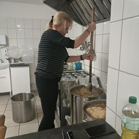 Dziękuję naszym wolontariuszom, że dzięki ich wsparciu ugotowaliśmy bigos. Zadbaliśmy o to, żeby w tym wyjątkowym dniu były dokładki i możliwość zabrania w słoiku na później. Wasza pomoc w piątek i sobotę była nieoceniona. Dziękuję dobrym ludziom za piękne i pachnące ciasta i dwa kartony bananów od „Mikołaja”. Dziękuję Łukaszowi z firmy Lyke Polska za to, że dzięki finansowemu wsparciu mogliśmy kupić produkty na ten wyjątkowy posiłek i za wsparcie pracą rąk osobistej małżonki Zosi. Dziękuję Pani Basi z Fundacji Amicis za coroczne paczki z wędlinami.