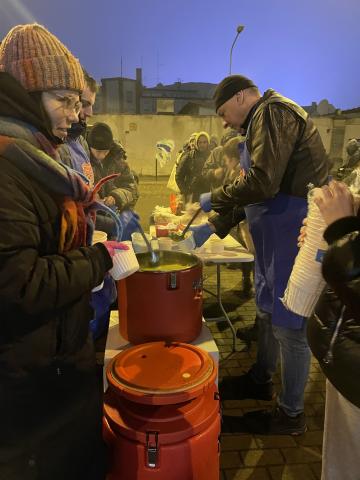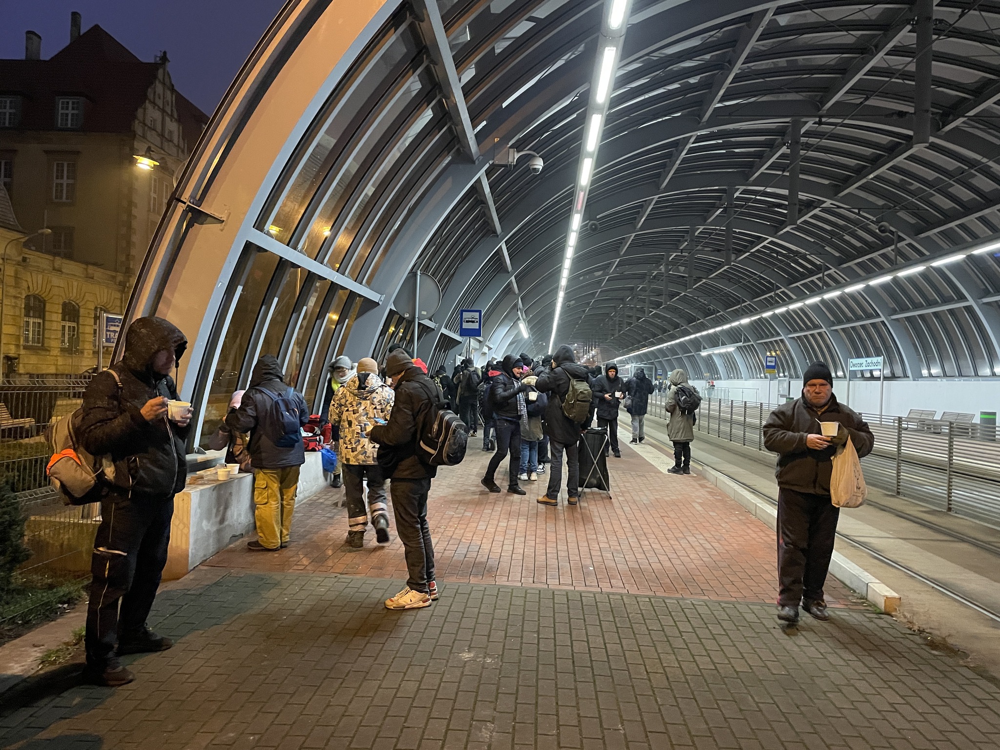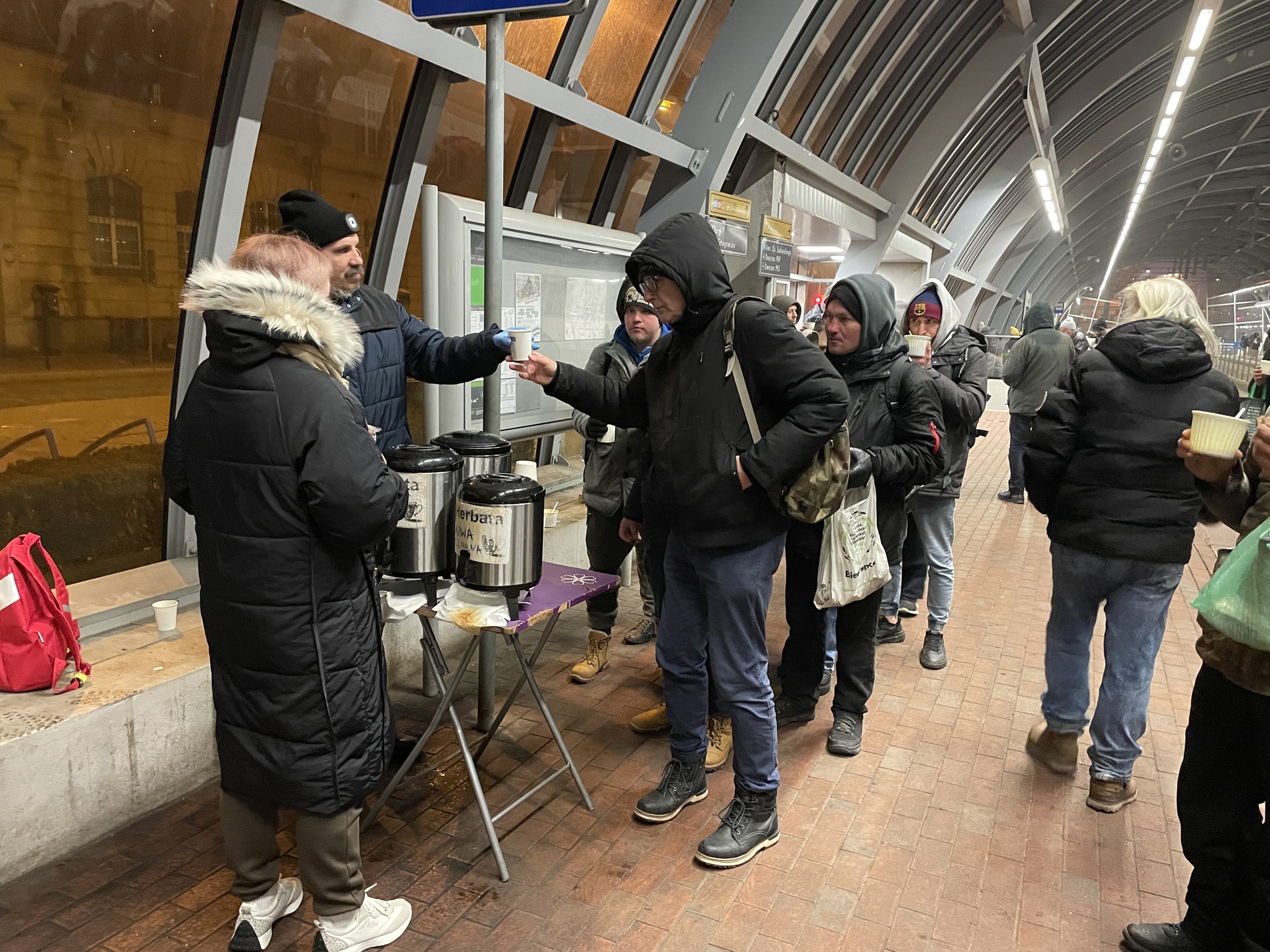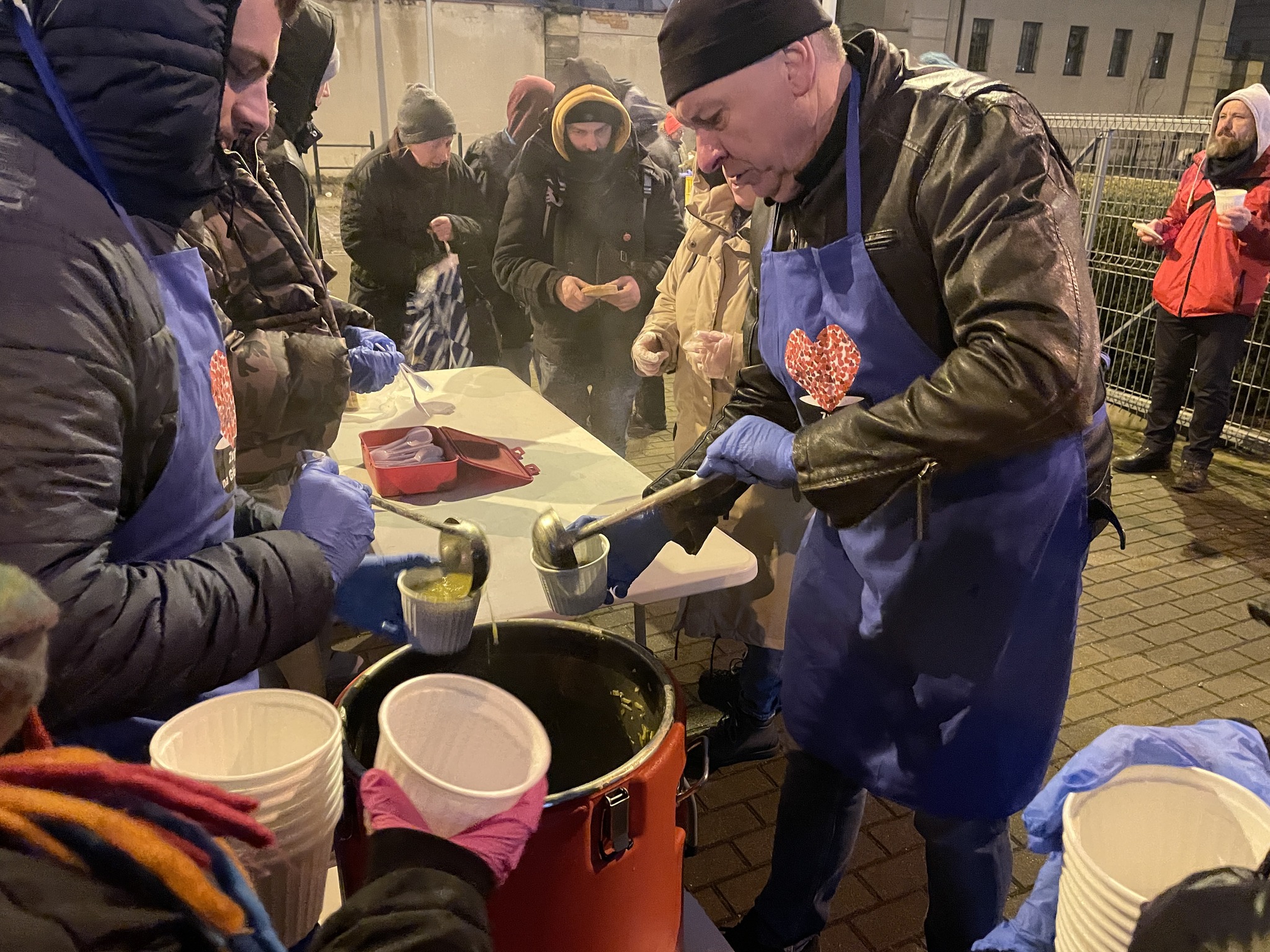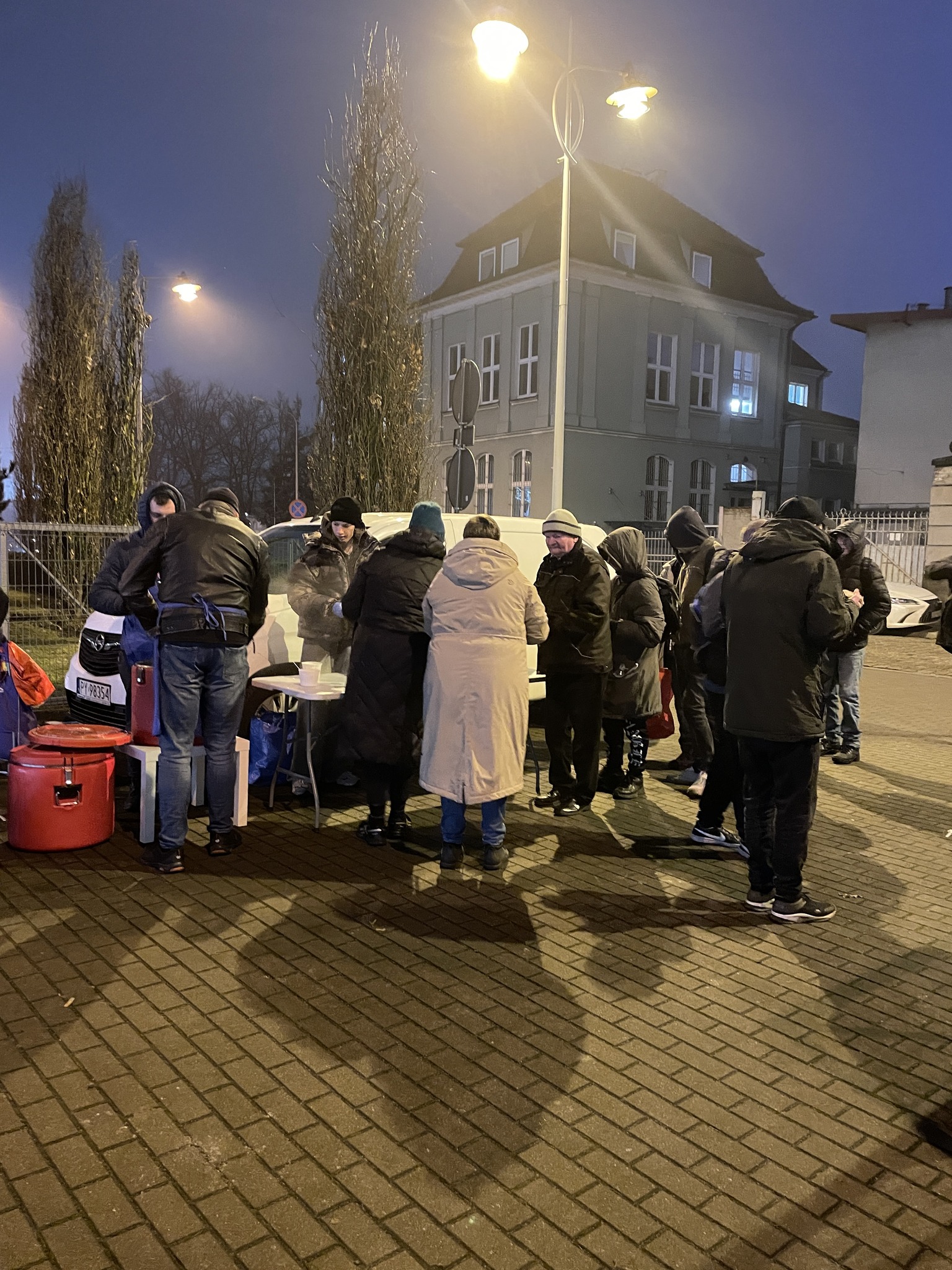 Pierwszy raz odkąd pamiętam została nam zupa - niewiele, ale jednak. Jak to powiedziała Gosia „widocznie dzisiaj jest w Poznaniu mniej głodnych ludzi”. Staliśmy i czekaliśmy na spóźnialskich, w międzyczasie nasza lekarka Marta pomagała tym, którzy jej pomocy potrzebowali. Gdy spakowaliśmy auto znalazło się jeszcze czworo spóźnialskich - im laliśmy zupę z termosów z auta.