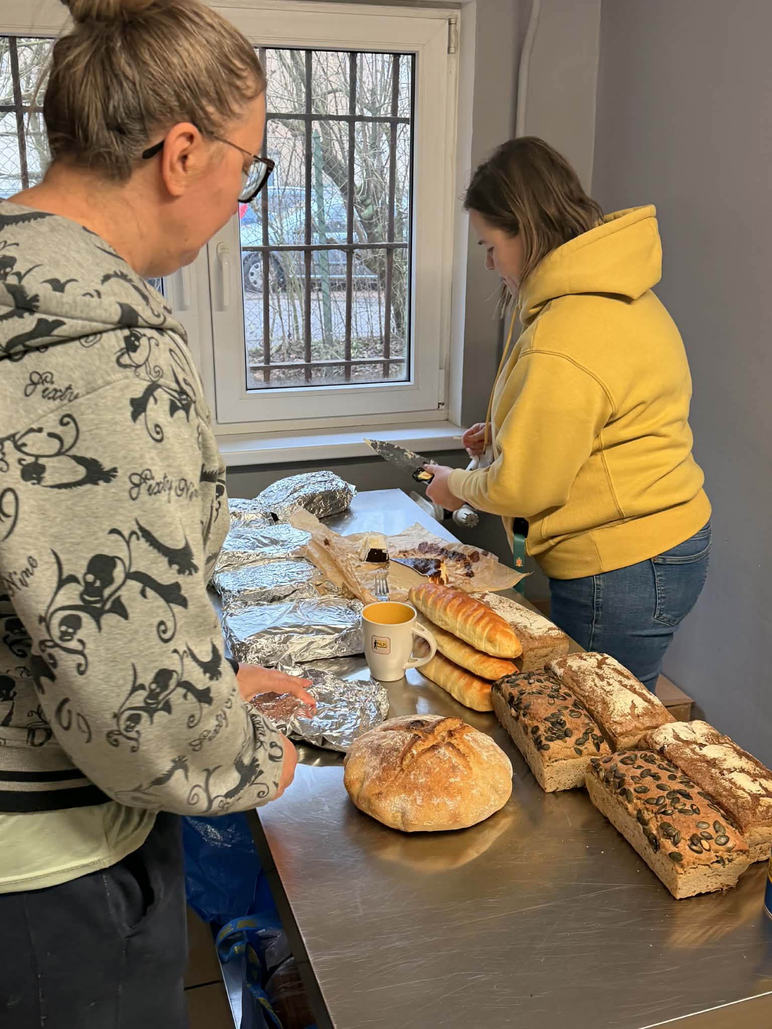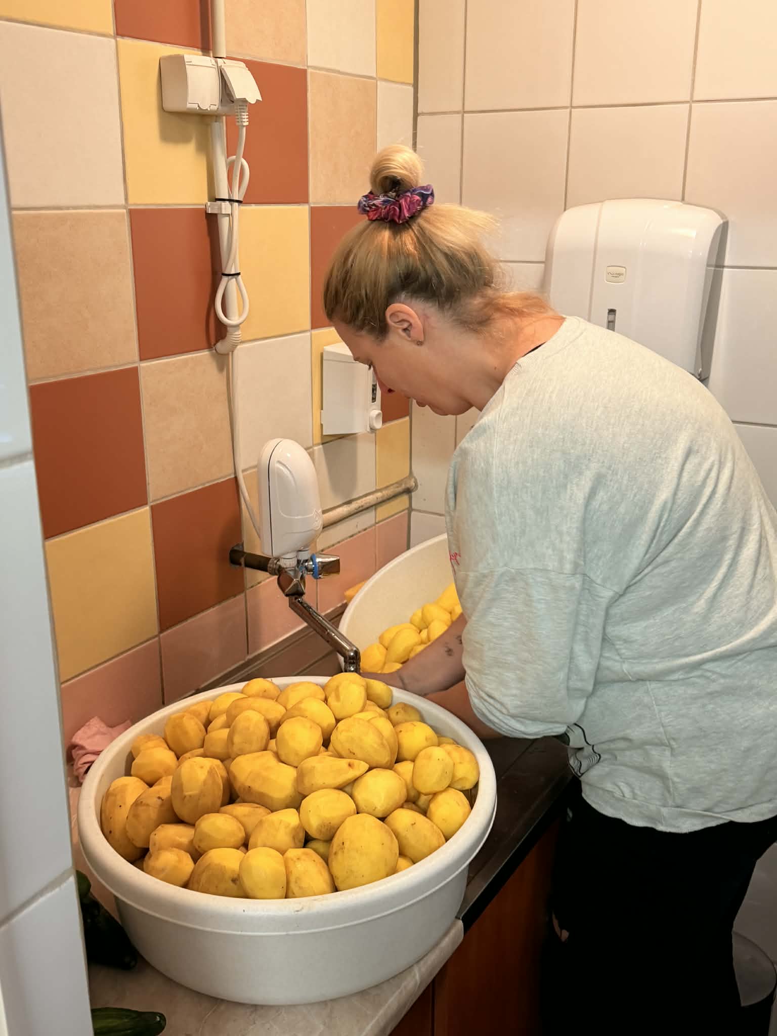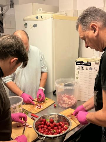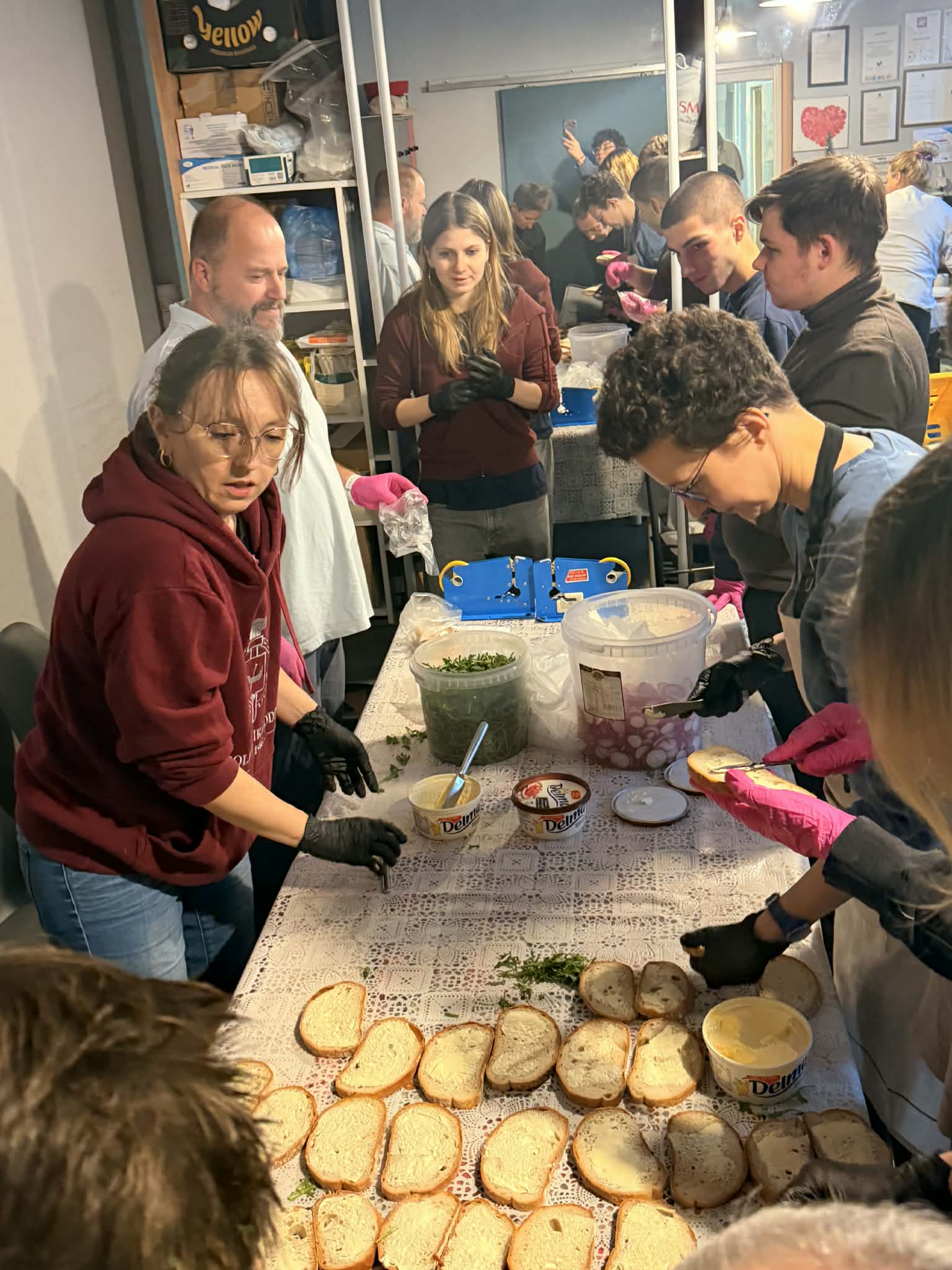 W sobotę wyjątkowo nie było żadnego wolontariatu pracowniczego, więc do działania zostali zmobilizowali zupowi wolontariusze. Przyszli tacy, którzy wpadają rzadziej, niektórzy nawet przynieśli ciasto! Praca szła dość sprawnie, po obraniu warzyw i przygotowaniu 180 kanapek czekaliśmy na to, żeby ogórkowa się ugotowała. A to taki proces, którego nie można przyspieszyć.