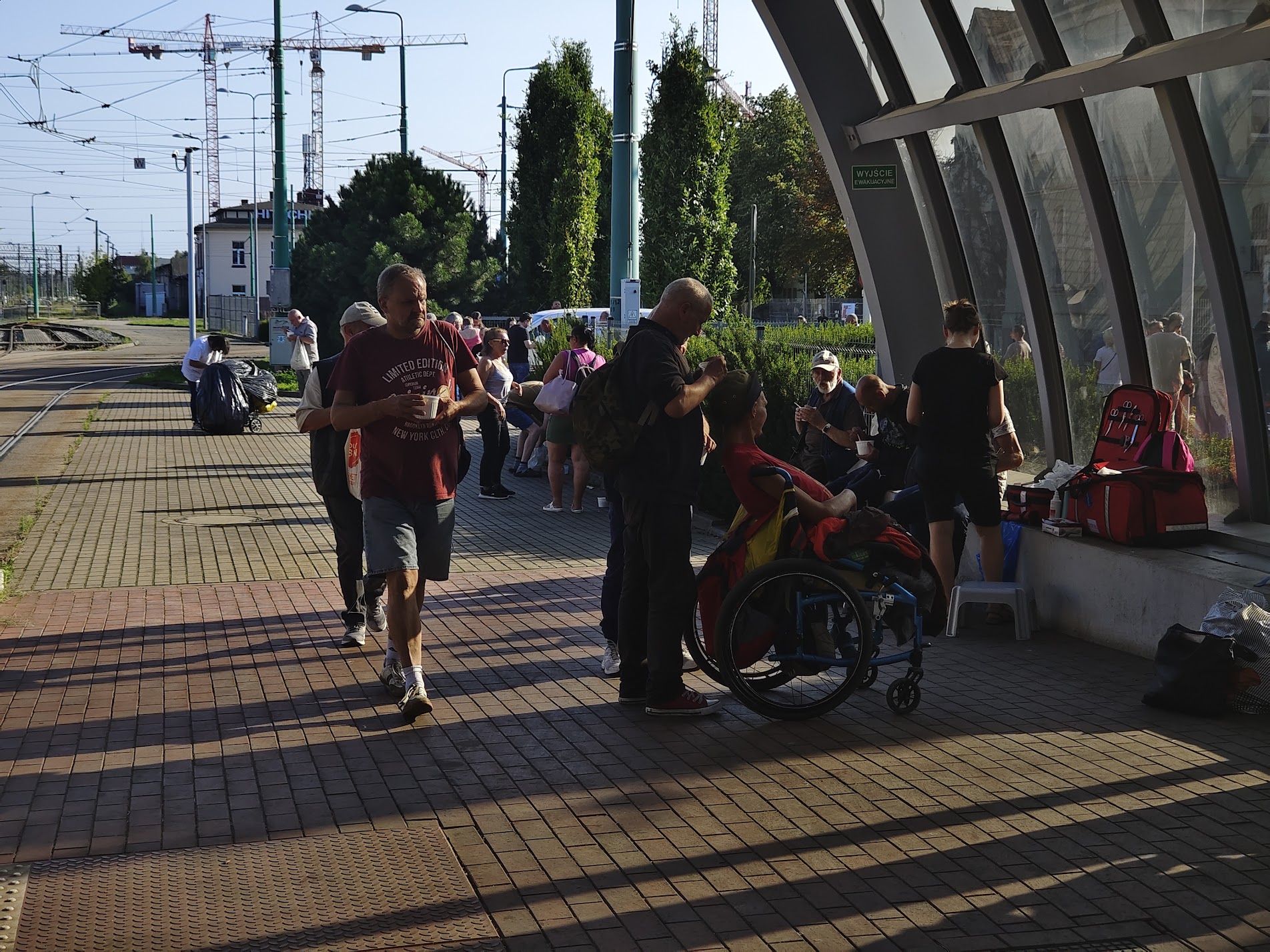 W ostatnią sobotę pracowaliśmy w bardzo małym składzie. W takich momentach trzeba skupić się mocno na wykonaniu zadania i nie ma zbyt wiele czasu na rozprężenia, ale jak zawsze wolontariusze stanęli na wysokości zadania i posiłek na dworzec dojechał na czas. Ela ugotowała jarzynową z fasolką szparagową, botwiną i kalafiorem. Były w zupie młode ziemniaki i pachnący koper. Była zimna lemoniada, dobra kawa i herbata, kanapki, porcje ciasta. Wróciliśmy z pustymi termosami i skrzynkami.