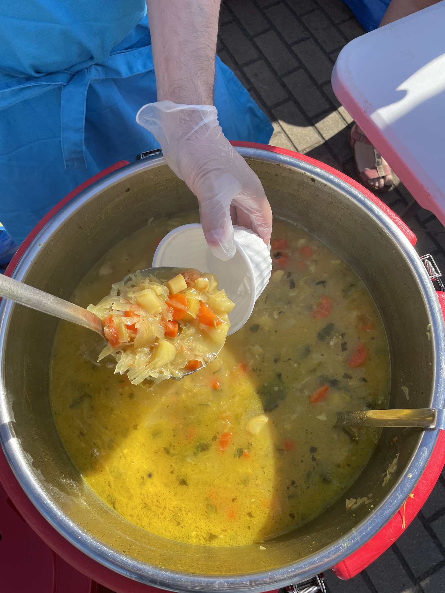 403. Zupa, to smak kapuśniaku, warzyw, pysznych kanapek. Na PST ludzi nieco mniej niż zwykle, ale zupy nie zostało na koniec ani pół chochelki. Kanapki, kawa, herbata, ciasto też wydaliśmy do ostatka. Agnieszka krążyła wśród ludzi zaczepiana i zaczepiając do rozmowy, Marta medyczna zmieniała opatrunki. Niby głośno, niby tłoczno, ale…