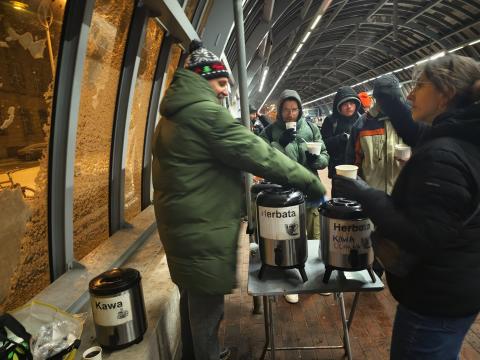 Na dworcu wydaliśmy 100 itrów zupy, 180 kanapek, 200 porcji ciasta, 35 litrów kawy i herbaty.