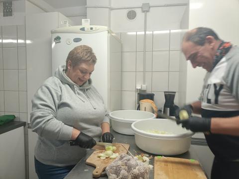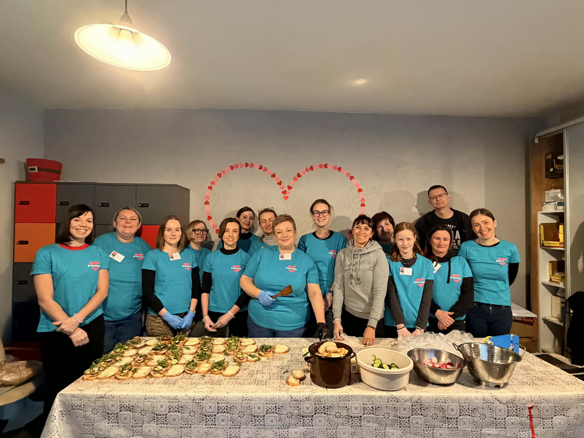 437. Zupa, która połączyła ludzi. W sobotę po raz pierwszy gotowaliśmy i wydawaliśmy posiłek razem z wolontariuszami z Mercedes-Benz Duda-Cars i Mazda Voyager. Weszli do nas jako „nowi”, a już po chwili mieliśmy wrażenie, że znamy się od dawna. Strach przed nieznanym zespołem zniknął szybciej, niż zdążyliśmy zamieszać w garach. Zastąpiło go poczucie, że damy radę - bo przyszli do nas ludzie z sercem, empatią i prawdziwą chęcią pomocy.