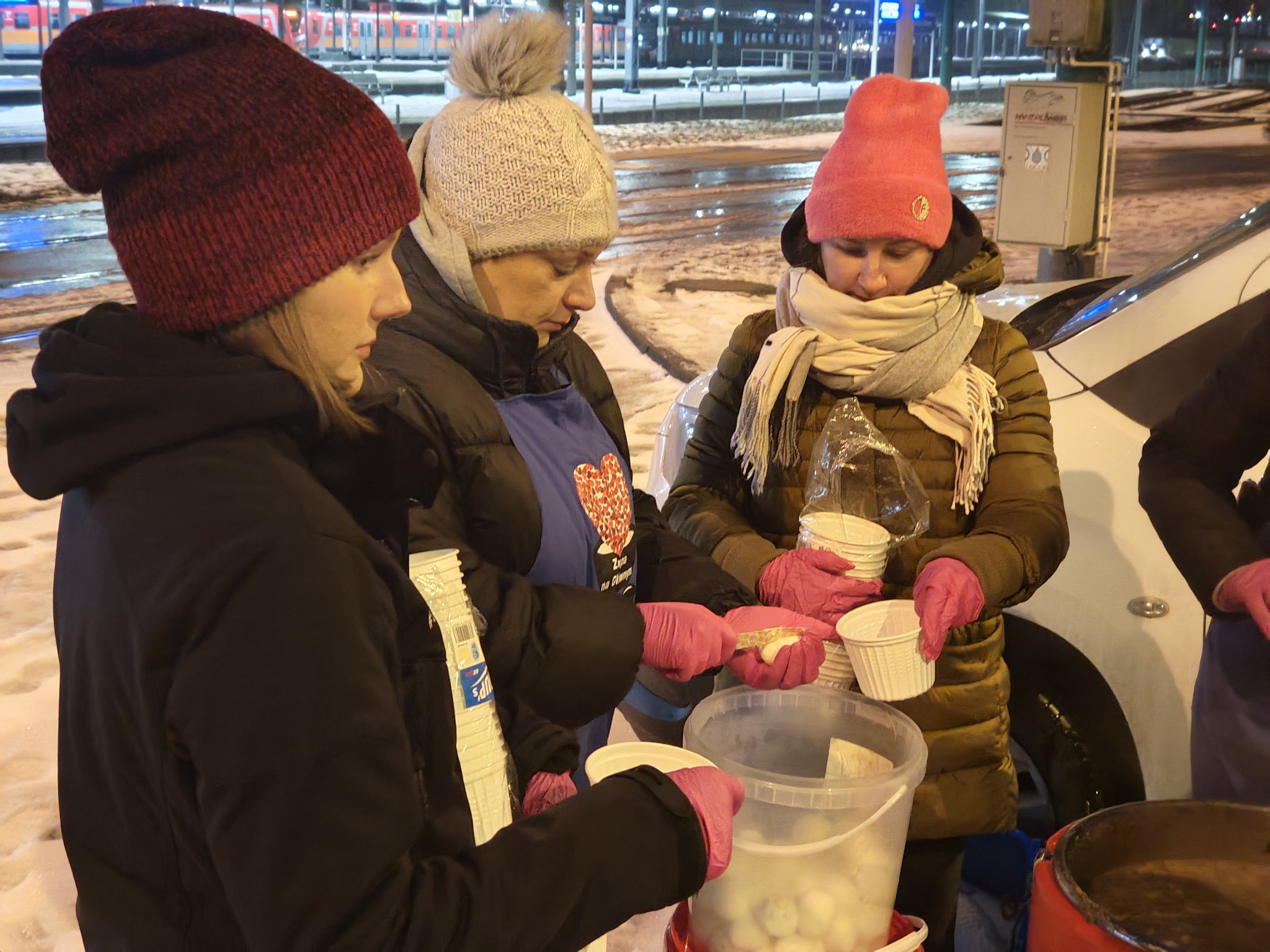 Dziękujemy Wam, kochani wolontariusze z Mercedes-Benz Duda-Cars i Mazda Voyager- za obecność, życzliwość, ciekawość i otwarte serca. Dziękujemy Waszemu szefostwu za to, że słucha ludzi i wspiera inicjatywy, które naprawdę mają znaczenie. Ogromne podziękowania kieruję także do naszych wolontariuszek Sary i Evy za koordynację kanapkowni oraz do Marty za wsparcie w kuchni. Dzięki Wam mogłam skupić się na 50 litrowych garach i mieszać w nich dobro, które później trafiło do tylu osób.