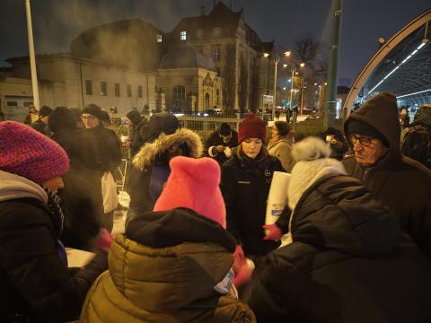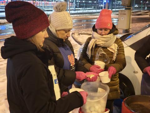 Dzięki ich wsparciu finansowemu mogliśmy dokupić brakujące produkty i ugotować nasz autorski żurek: wymagający, wieloskładnikowy, pełen uważności. Do każdej miski trafiało przekrojone na pół jajko, a było ich aż 200 - nikt nie odszedł bez tego małego symbolu domowego ciepła.