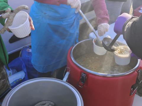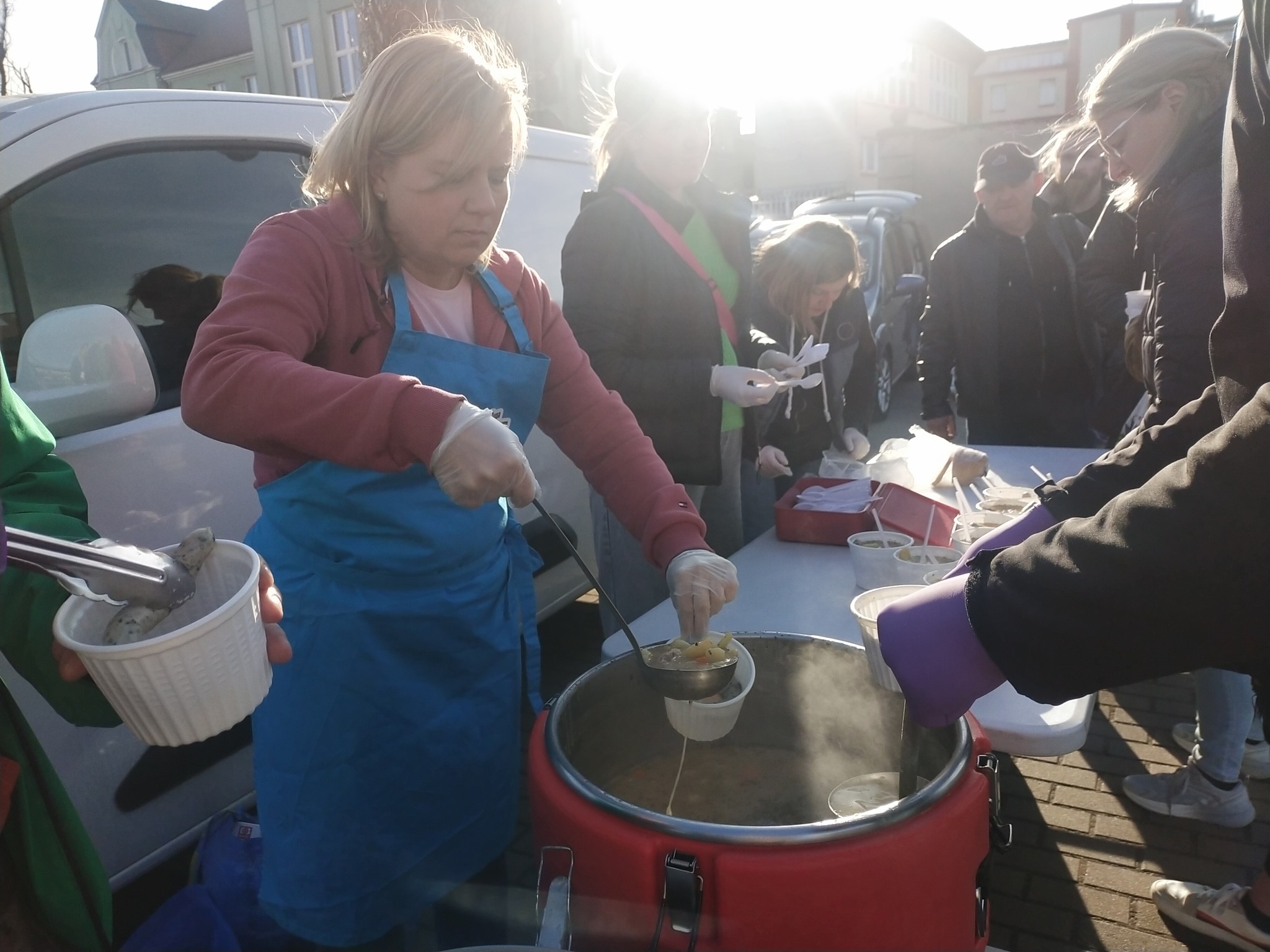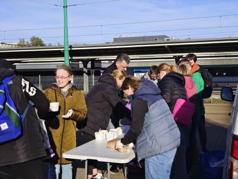 Ugotowaliśmy 100 litrów żurku z jajkiem i białą kiełbasą. Kilka osób przyniosło do naszej siedziby własne wypieki. Pokroiliśmy je, poporcjowaliśmy i wydaliśmy razem z kanapkami, żeby każdy mógł zabrać ze sobą coś słodkiego.